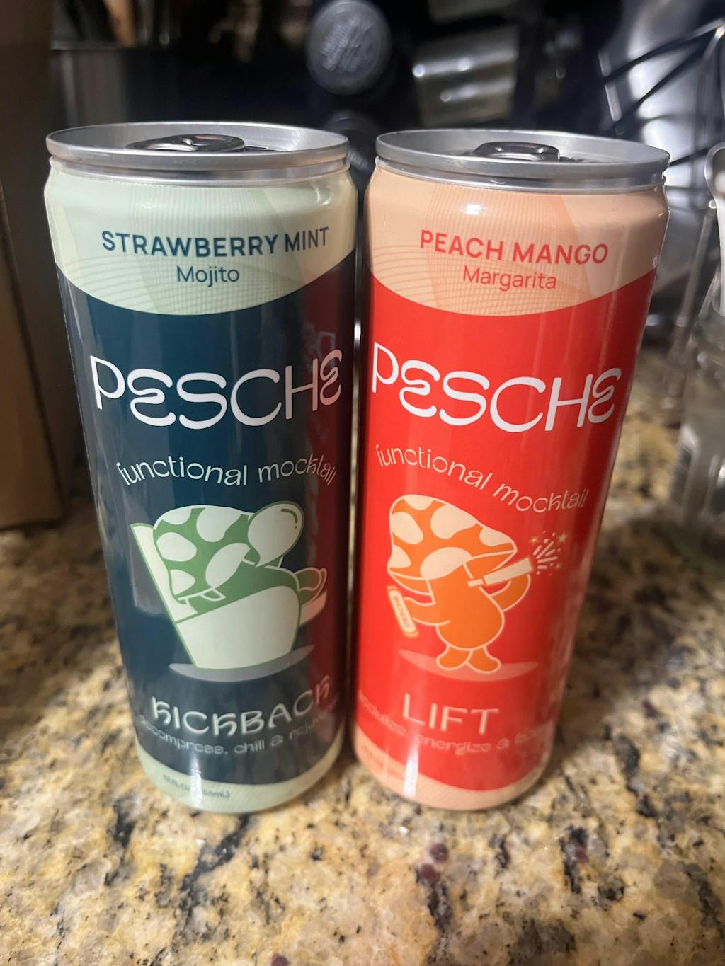 I have ordered drinks from Pesche three times. I like all of the flavors, however the Kickback Strawberry Mint Mojito is my favorite. I brought a couple of cans of Kickback with me recently when a bunch of friends got together for a dinner party. I like to serve it in a wine glass with a slice of lime. I also enjoy the Lift Peach Mango for a quick pick me up in the middle of the day. I love that Pesche has no artificial ingredients in their drinks.